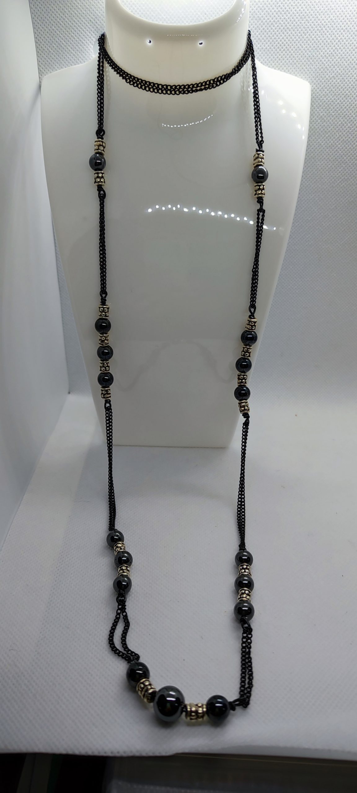 Realizzata con pietre di ematite e accessori di metallo col. argento.
