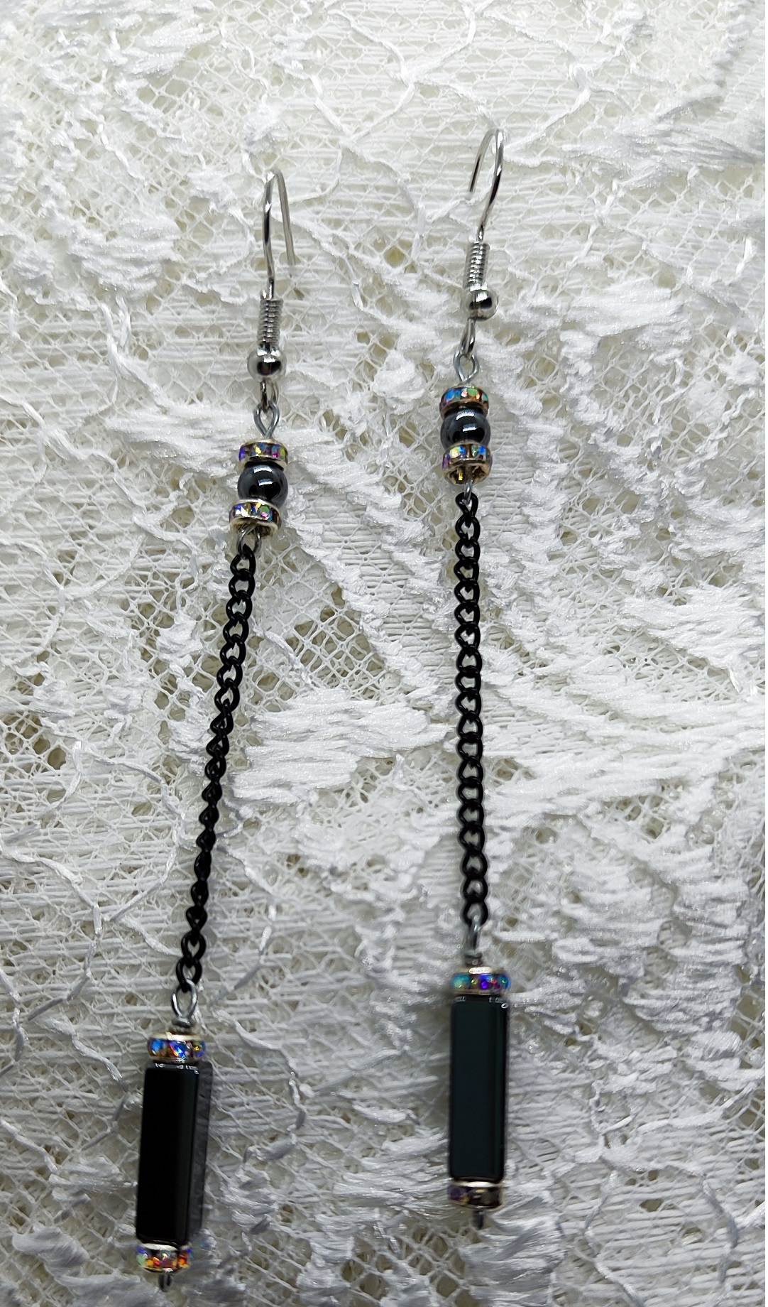 Realizzati con pietre ematite, catenella nera e metalli col. argento