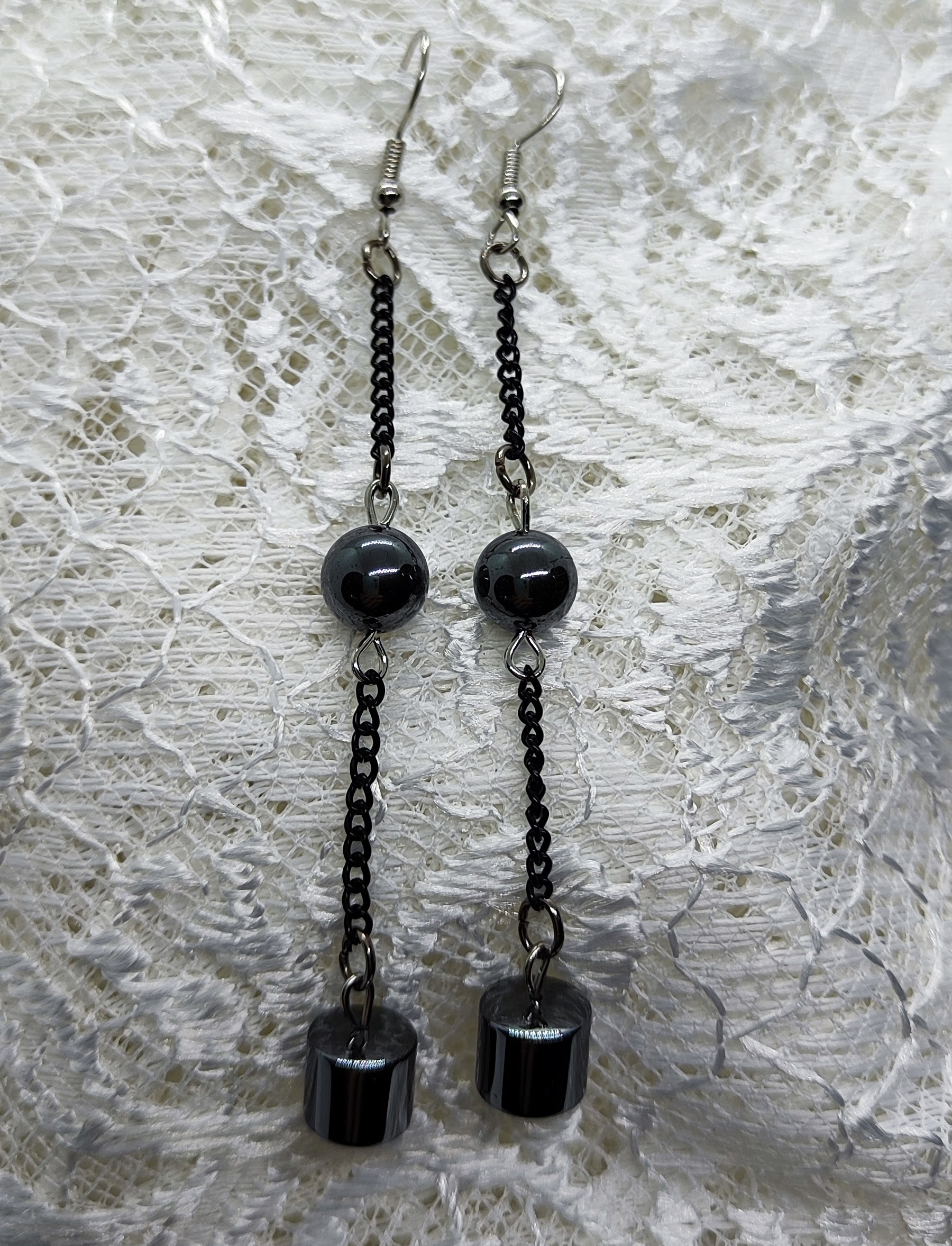 Realizzati con pietre ematite, catenella nera e metalli col. argento